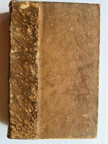 Holandesa, tela, fatigada. Algunas raspaduras en bordes. Manchas de oxido. Pequeña pérdida en parte interna de la portada, sin afectar texto. Dobleces en la esquina derecha de los primeros pliegos.