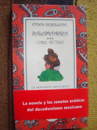 Salamandra y Caro Victrix son dos tonadas diferentes pero idénticas de la temática central de la obra de Efrén Rebolledo (1877-1929): la pasión erótica. Salamandra, como bien indica Luis Mario Schneider en el prólogo de esta edición, es la novela breve que compendia de manera fascinante el bizantinismo, dandysmo y afrancesamiento de la vida nacional de finales y comienzos de siglo; "es el México de las colonias Juárez y Roma, del bosque de Chapultepec, de la avenida Madero y de su Sanborn"s, del teatro Abreu y de las haciendas de Querétaro". Historia amorosa, pero historia de amor marcada por el decadentista símbolo de la salamandra: "diosa sagradamente perversa, sacerdotisa de la belleza maldita... mujer-vampiro, también araña, reveladora, despertadora del masoquismo congénito de sus víctimas". Y paralelamente a Salamandra, los doce magníficos sonetos eróticos de Caro Victrix, los cuales fueron calificados con la finura y elegancia crítica de Xavier Villaurrutia como "los más intensos y hasta ahora, mejores poemas de amor sexual de la posía mexicana. Es entonces cuando el poema de Rebolledo no es ya como una joya sino una joya".