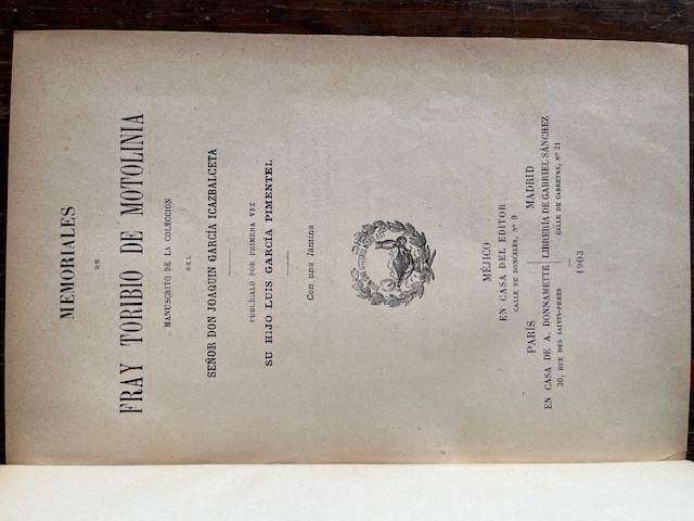 Memoriales de Fray Toribio de Motolinia [seud.] manuscrito de la colección del señor Don Joaquín García Icazbalceta, que publicó por primera vez su hijo Luis García Pimentel
