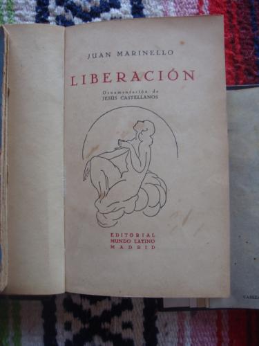 Ornamentación de Jesús Castellanos. Primer libro de Marinello. Holandesa, con raspones en los bordes. Elegante encuadernación.