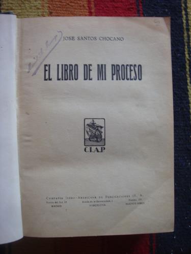 Rüstica, con las cubiertas. El dibujo de la cubierta es del hijo de Chocano, de 10 años de edad. Manchas de óxido. Lomo amarronado.