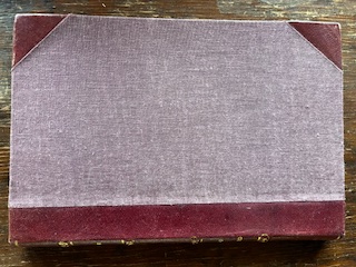 Holandesa, tela, fatigada. Lomo deslucido, casi no se ven las letras. Sellos del dueño de biblioteca en la portada.