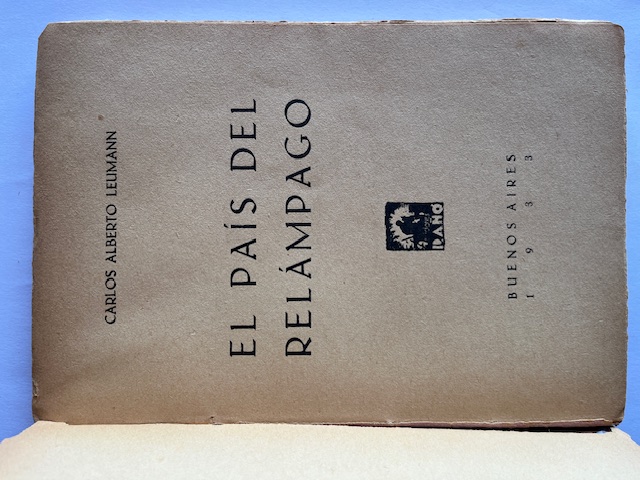 Holandesa, tela, fatigada, ligeros puntos de óxido. Dedicatoria manuscrita del autor en la portada, que ha sido recortada para no afectar a la dedicatoria. Primer libro de Leumann.