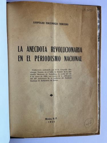 Holandesa. Conferencia sustentada por Leopoldo Zincunegui Tercero, en el Salón de Sesiones de la Asociación Mexicana de Periodistas, la noche del día 8 de enero de 1958, con motivo de la celebración del 35º aniversario de la fundación del Sindicato Nacional de Redactores de Prensa.