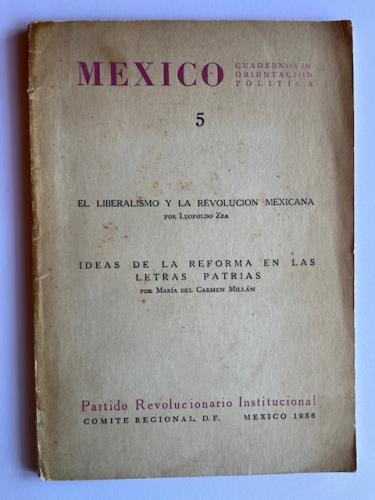 Rústica. Autógrafo. Contiene: El liberalismo y la revolución mexicana por Leopoldo Zea. Ideas de la reforma en las letras patrias por María del Carmen Millán. Colección: México. Cuadernos de orientación política.
