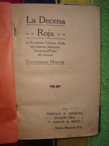 La Decena Roja. La Revolución Felixista. Caída del Gobierno Maderista. Elevación al Poder del General Victoriano Huerta