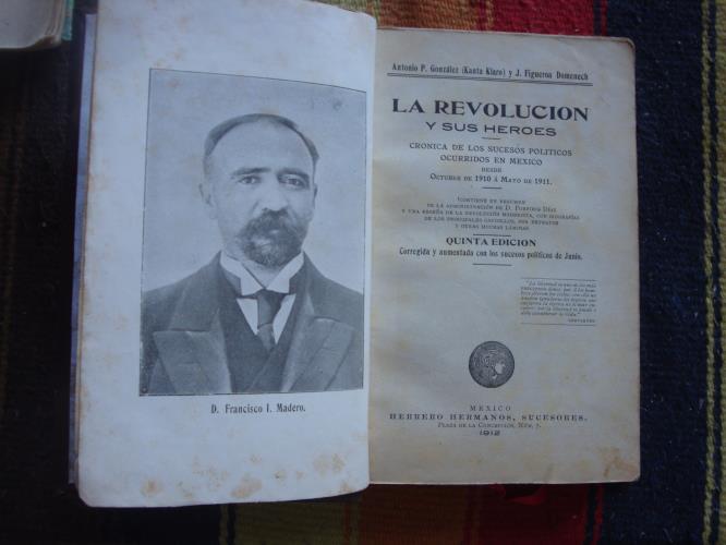 Crónica de los sucesos políticos ocurridos en México desde Julio de 1911 a Febrero de 1913. Contiene láminas. Holandesa con las cubiertas. Intonso. Es un trabajo de recopilación periodística, publicado a muy esca-so tiempo de los acontecimientos que narra. Podría considerarse una crónica, pero no una novela o un libro de memorias. Inclu-yen fotografías de los personajes y de los hechos que narran.