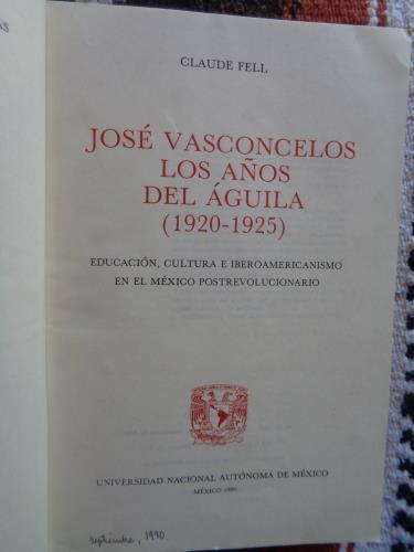 José Vasconcelos. Los años del Águila (1920-1925)educación, cultura e iberoamericanismo en el México postrevolucionario
