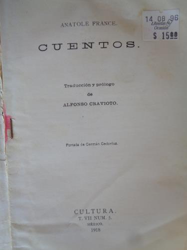 87 págs. 17.5 x 11.5 cm. Alfonso Cravioto. Castellano , traducido del francés por Alfonso Cravioto.