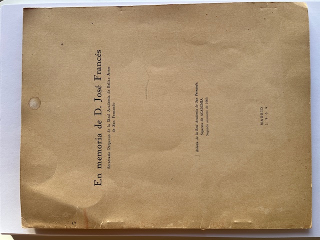 En memoria de D.José Francés, Secretario Perpetuo de la Real Academia de Bellas Artes de San Fernando