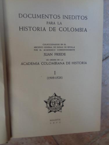 Coleccionados en el archivo general de las indias de sevilla por el académico correspondiente Juan Freides de orden de la Académia Colombiana de Historia. Queratol con cubiertas. Edición numerada de 1000 ejemplares y se dispone al 883.