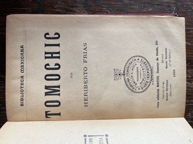 Se indica que es Continuación de "Tomochic", pero se lee como obra independiente. Tela, al parecer encuadernación particular, fatigada y raspones y mancha en los bordes. Lomo mudo. Dedicatoria autógrafa del autor. Exlibris anterior propietario en vuelta de portada.