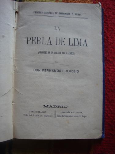 España - Perú - Novela - Siglo XIX - Guerra- Rara.