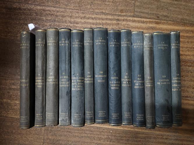 Holandesa. Tipografía Emporium. Tirada de 150 ejemplares en papel de hilo Guarro fabricado a mano, con filigranas de la "Fundació Bíblica Catalana", numerados con cifras arábicas y 3000 ejemplares en papel Torres- Domènech. Falta volumen VII y IX.