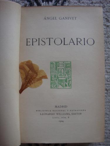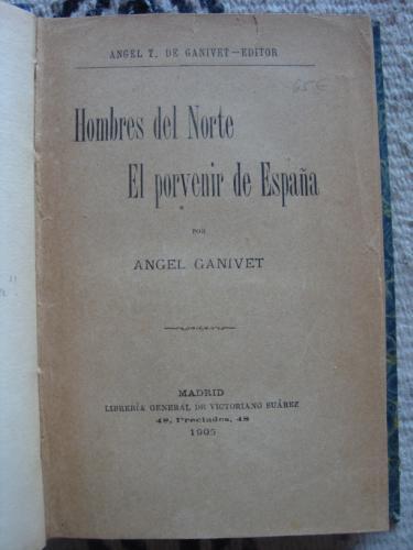 Holandesa, tela, con la cubierta delantera. Ganivet es uno de los más importantes ideologos de la generación del 98:.