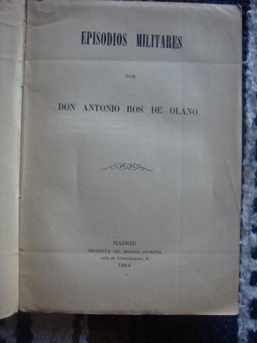 Rústica, con las cubiertas, pero sin lomo. Trata de la Guerra de los Siete Años y de la Guerra de África, en las que participó el autor. Palau señala que es una reimpresión de la Revista de España, 1868, sin embargo, en el prólogo se indica que acaba de terminar de escribir "Saltos de memoria" a los 76 años.